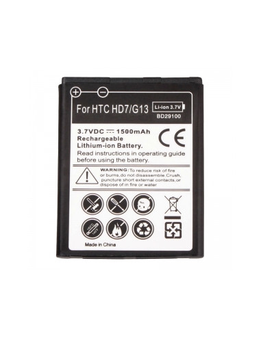Bateria de repuesto para los telefonos HTC modelo WILDFIRE. Modelo: BD29100 1500 mAh AVISO: La garantía de las baterías de Litio es de 6 meses.