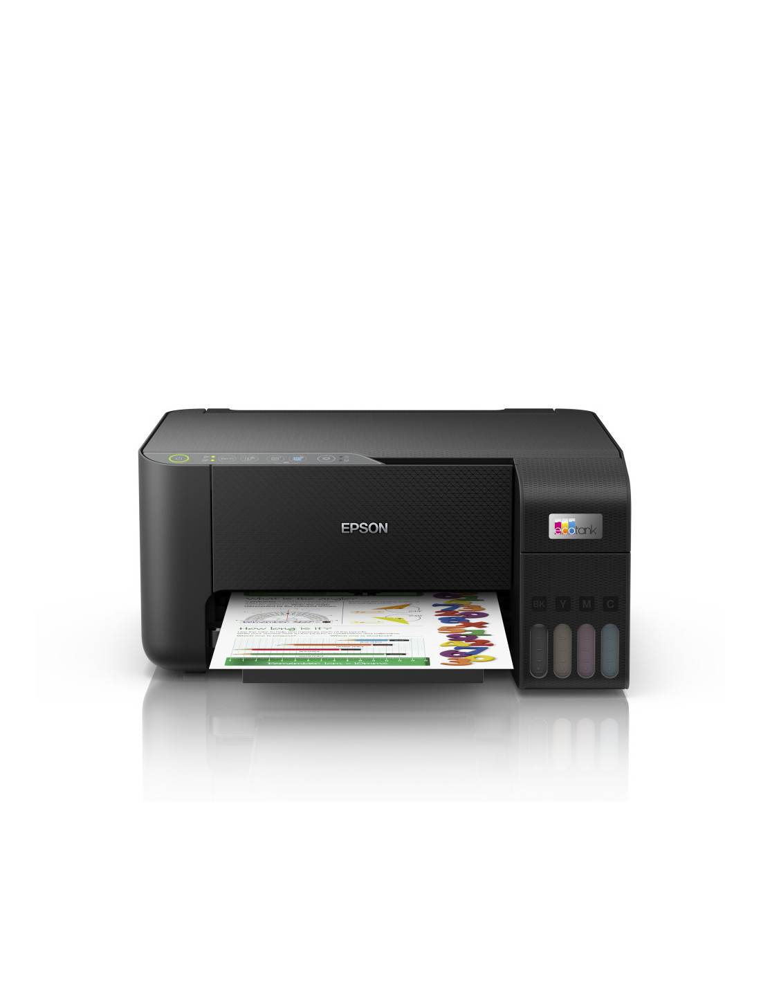 Di adios a los cartuchosEcoTank proporciona una solucion sin complicaciones para la impresion en casa: los depositos de tinta de ultraalta capacidad estan disenados para recargas limpias con botellas que incluyen una funcion de bloqueo que solo permite rellenar cada deposito con el color correcto. Asimismo, podras prever facilmente cuando toca rellenar tinta gracias a la pantalla frontal.No dejes de ahorrarAhorra hasta un 90 % en costes de impresion* con esta impresora, que se entrega con una botella de tinta negra adicional para imprimir hasta 3 anos sin necesidad de reposicion*. Un solo juego de botellas de tinta permite imprimir hasta 4500 paginas en blanco y negro y 7500 en color*, lo que equivale a unos 72 cartuchos de tinta.*Aplicacion Epson Smart PanelEsta aplicacion permite controlar la impresora desde tu movil o tableta*. Puedes imprimir, copiar y escanear documentos y fotos o configurar, supervisar y solucionar problemas de tu impresora, todo desde tu telefono o tablet.Repleta de funcionesCon una bandeja de papel trasera de 100 hojas, impresion fotografica sin bordes (hasta 10x15 cm) y velocidades de impresion de hasta 10 paginas por minuto*, podras imprimir lo que quieras de forma rapida y sencilla.Flexible y modernaCon un diseno compacto y conectividad Wi-Fi y Wi-Fi Direct para imprimir desde moviles, tablets y ordenadores portatiles*.Disenado para durarLa tecnologia de impresion Sin Calor hace que el cabezal de impresion dure toda la vida util de la impresora, con lo que te ahorras la necesidad de recambios y de actualizaciones innecesarias, ademas de ofrecer un consumo energetico menor. Su innovador diseno evita ademas obstrucciones en los inyectores.